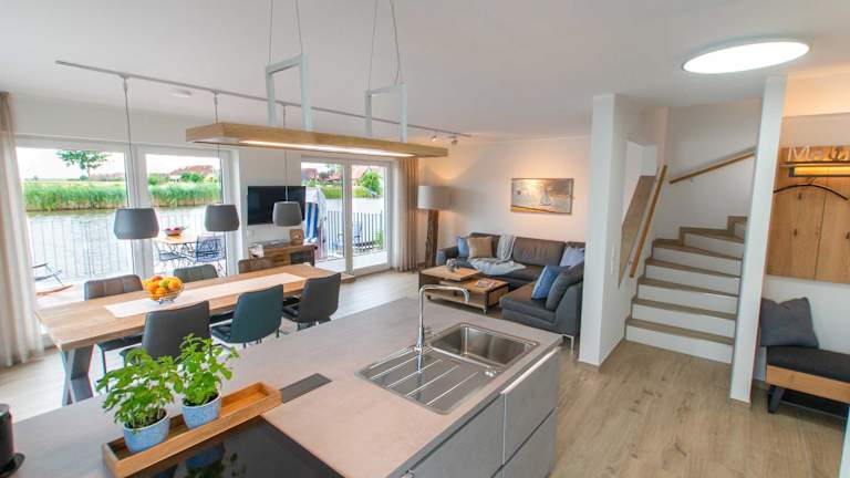 Nr 110 - Ferienhaus Seeperle Pfahlhaus auf der Harle bietet Übernachtungsmöglichkeiten in einem gut ausgestatteten Ferienhaus mit Seeblick. Es umfasst eine Terrasse und kostenloses WLAN. Das Ferienhaus verfügt über 3 Schlafzimmer und bietet Platz für eine Familie oder Gruppe.