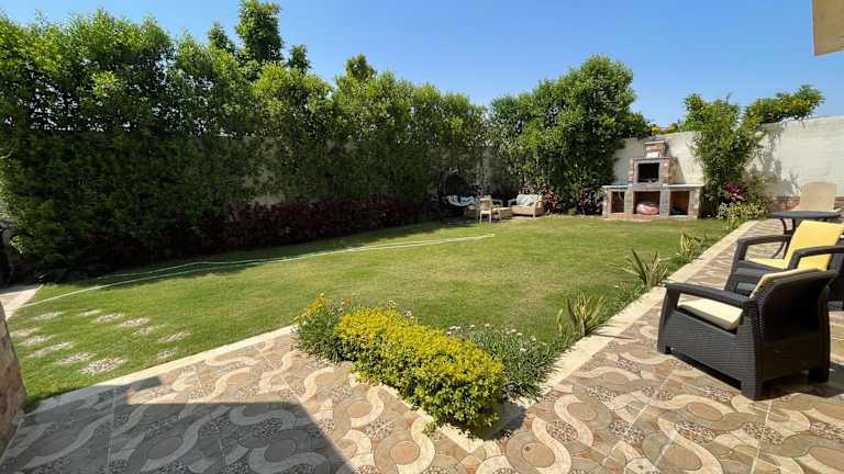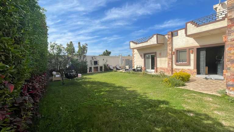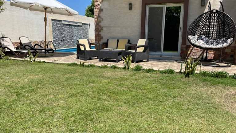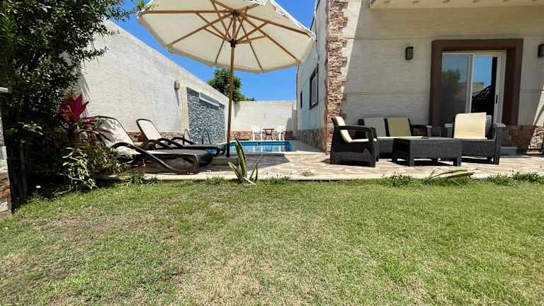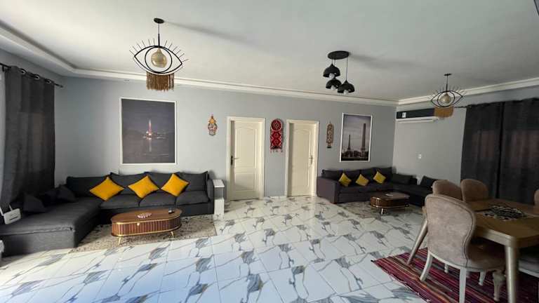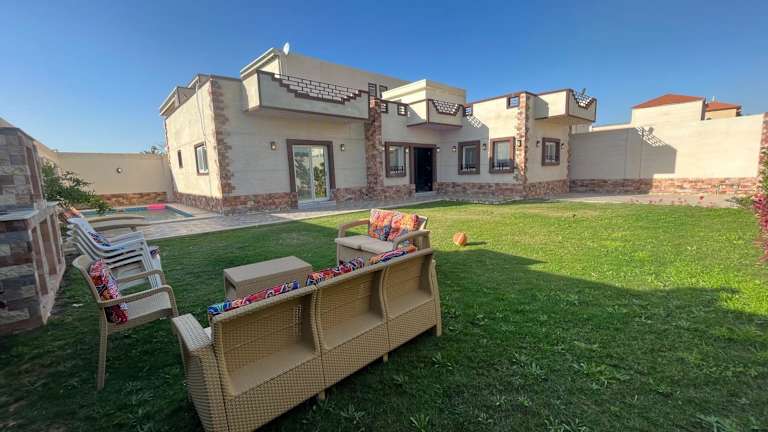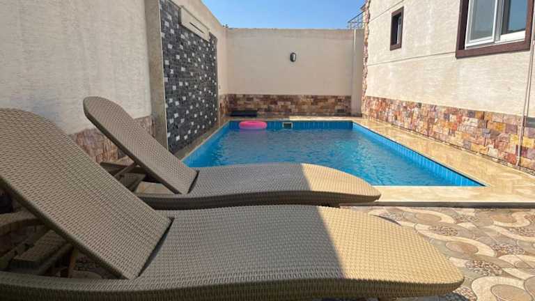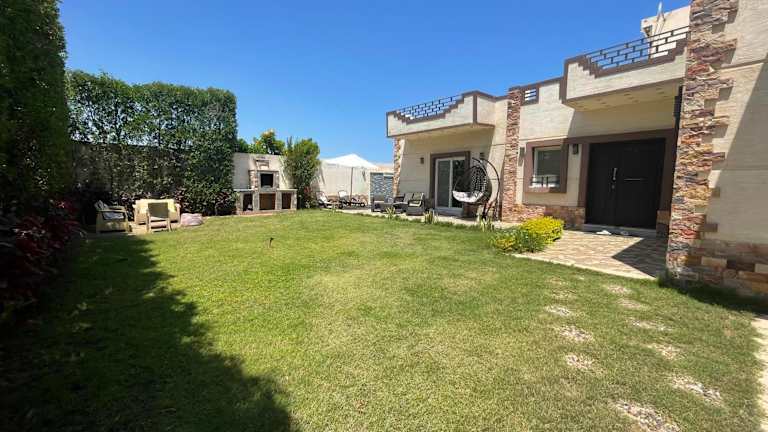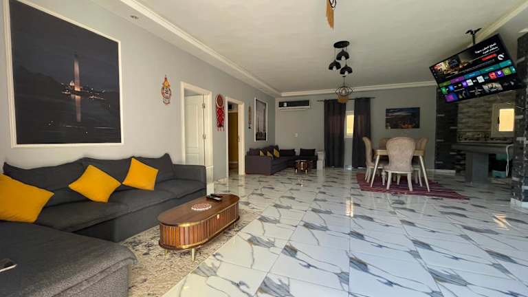 Die Nubian Villa with Private Pool in Naj' al Aḩwāl bietet Ihnen eine luxuriöse und entspannte Unterkunft mit einem eigenen Außenpool und einem wunderschönen Garten. Die Villa verfügt über geräumige und klimatisierte Zimmer, eine voll ausgestattete Küche und mehrere Badezimmer. Genießen Sie den Komfort eines Flachbild-TVs und kostenfreiem WLAN. Entdecken Sie die Umgebung und besuchen Sie die nahegelegenen Sehenswürdigkeiten wie die Katakomben von Kom el Shoqafa und den Zoo Alexandria. Der internationale Flughafen Borg el Arab ist nur eine kurze Autofahrt entfernt.