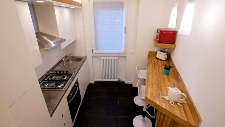Eine voll ausgestattete Küche steht zur Verfügung, die mit einem Kühlschrank und einer Kaffeemaschine ausgestattet ist. Es werden zudem Handtücher und Bettwäsche zur Verfügung gestellt.