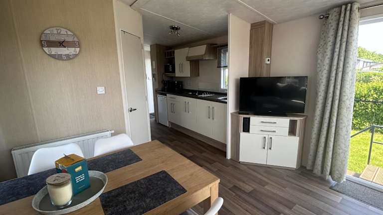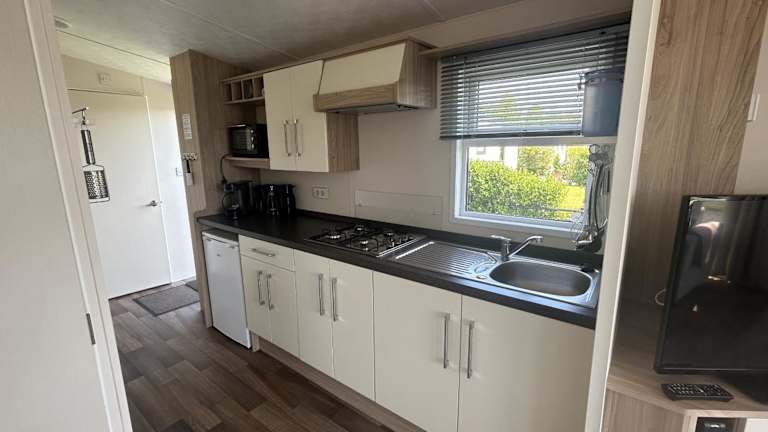 Das Chalet der Unterkunft umfasst 2 Schlafzimmer, einen Fernseher, eine gut ausgestattete Küche mit Kühlschrank und Ofen sowie ein Badezimmer mit Dusche.