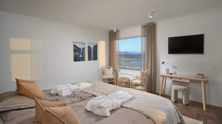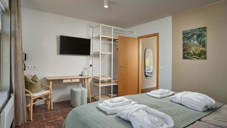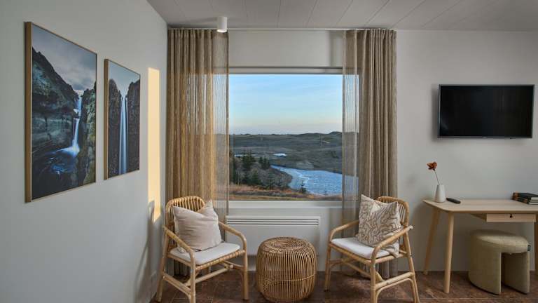 Die Unterkunft befindet sich in Kirkjubæjarklaustur, 22 km von Fagrifoss entfernt. Die Umgebung bietet Möglichkeiten zum Wandern und Fahrradfahren.