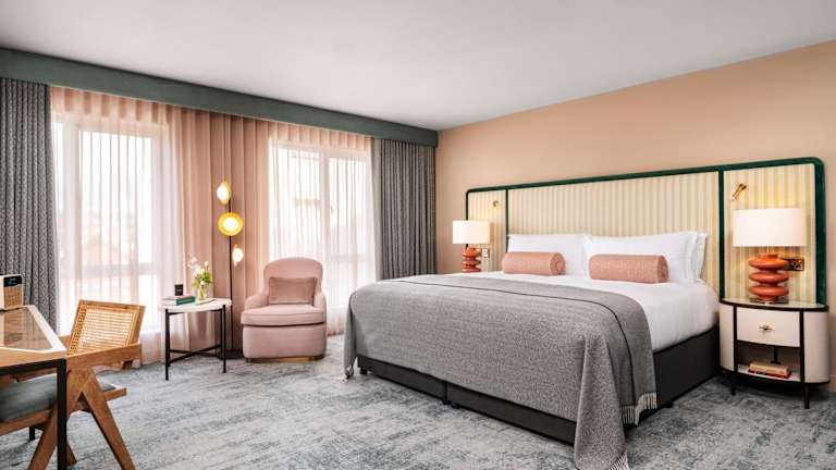 Die Zimmer sind klimatisiert und bieten einen modernen Komfort mit einzigartigen Möbeln. Zur Ausstattung gehören Smart-TVs mit Chromecast-Konnektivität und kostenloses WLAN. Es sind insgesamt 99 Schlafzimmer mit eigenem Bad vorhanden.