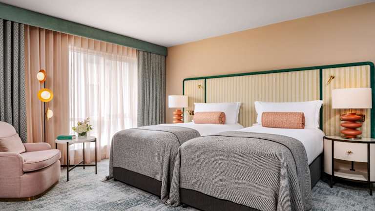 Das O'Callaghan Stephen's Green Hotel ist ein modernes Hotel, das über 99 Schlafzimmer mit eigenem Bad sowie ein 24-Stunden-Fitnessstudio verfügt. Die Zimmer sind klimatisiert und mit einzigartig gestalteten Möbeln, Smart-TVs mit Chromecast-Konnektivität und kostenlosem WLAN ausgestattet. Zusätzlich bietet das Hotel einen offenen Arbeitsplatz mit kostenlosem WLAN und Ladestationen im Erdgeschoss.