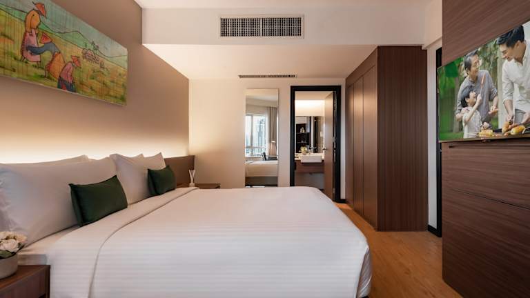 Die Zimmer sind klimatisiert und stilvoll eingerichtet. Sie verfügen über einen TV, Teppichböden und bieten Optionen für Doppel- oder Kingsize-Betten sowie Zustellbetten. Ausgestattet mit einer Kochnische, Kühlschrank, Mikrowelle und einer Tee-/Kaffeemaschine, stehen zudem Bügelset, Hosenpresse und ein Wäschetrockner zur Verfügung. Die Badezimmer sind mit einer Dusche, einer Badewanne, einem Haartrockner, Bademänteln und Kosmetikartikeln ausgestattet. Die Zimmer bieten auch WLAN ohne Gebühr und es gibt spezielle rollstuhlgerechte Zimmer.