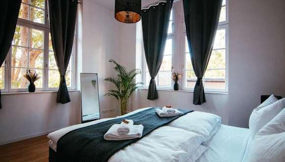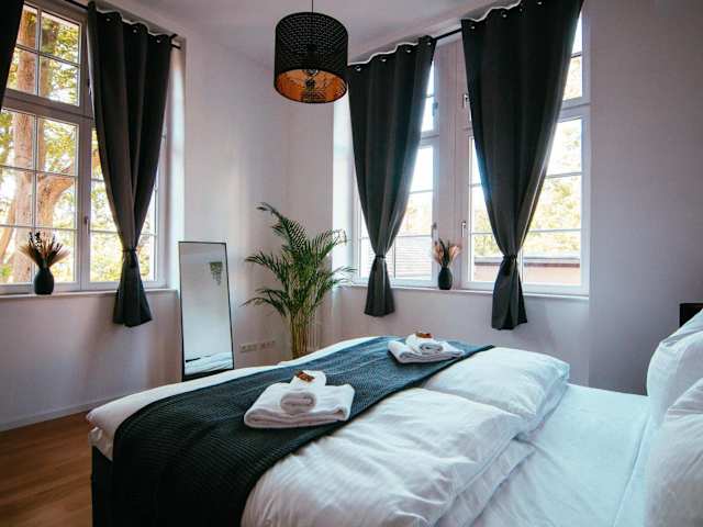 Die Unterkunft Oasis Appart - Wohnen im Königspark bietet einen Garten und eine große Terrasse mit Stadtblick. Sie ist ausgestattet mit kostenlosem WLAN und einem kostenlosen Privatparkplatz. Die Ferienwohnung ist ideal für Familien und Nichtraucher.