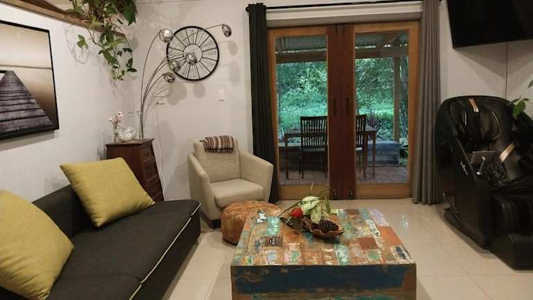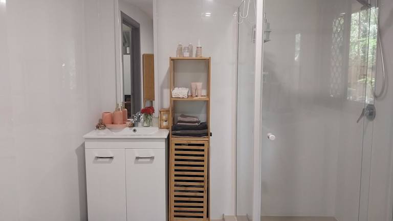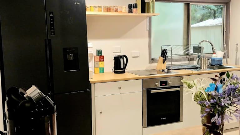 Das klimatisierte Ferienhaus in der Oasis at Burringbar Waterfront Unterkunft verfügt über ein gemütliches Schlafzimmer, ein geräumiges Wohnzimmer und eine voll ausgestattete Küche. Die Küche ist mit einem Kühlschrank und einer Kaffeemaschine ausgestattet, sodass Sie Ihre eigenen Mahlzeiten zubereiten können. Das Badezimmer verfügt über eine Dusche und einen Haartrockner. Handtücher und Bettwäsche werden im Ferienhaus bereitgestellt.