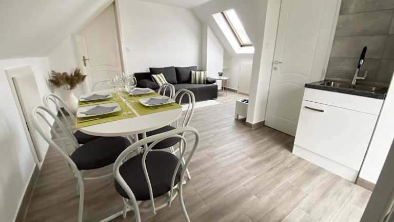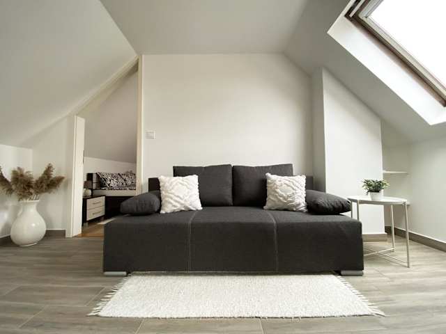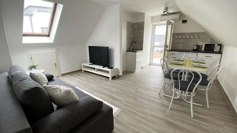 Die Ferienwohnung umfasst ein Schlafzimmer sowie eine Küche, die mit einem Kühlschrank und einem Geschirrspüler ausgestattet ist. Des Weiteren stehen ein Flachbild-TV, ein Sitzbereich und ein Badezimmer mit Badewanne oder Dusche zur Verfügung. Handtücher und Bettwäsche werden bereitgestellt.
