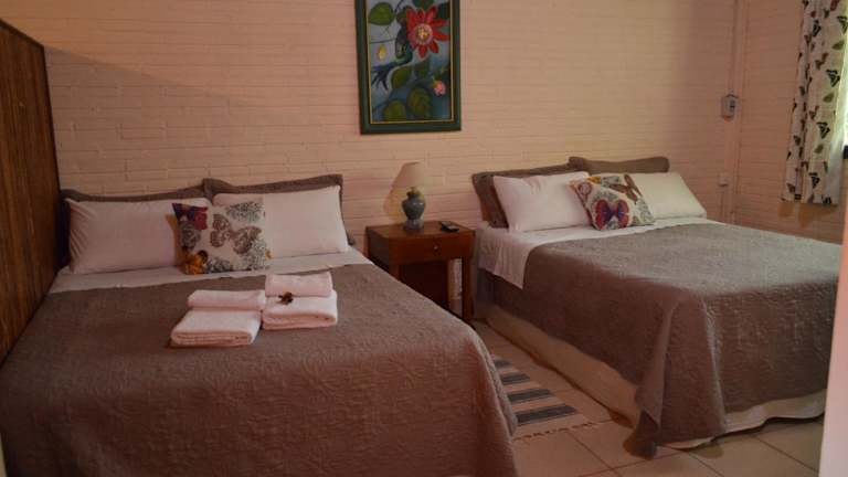 Das Oasis Bed and Breakfast in Puerto Iguazu ist ein charmantes und gemütliches Hotel, das von einer üppigen Vegetation umgeben ist. Hier können Sie kostenfreies WLAN und einen privaten Parkservice genießen. Das Hotel liegt nur 1 km vom Einkaufszentrum entfernt und bietet komfortable Zimmer mit eigenem Bad und einem Sitzbereich zum Entspannen. Eine Gemeinschaftsküche steht ebenfalls zur Verfügung. Das Hotel bietet außerdem kostenlose regionale Getränke und Appetizer an. In der Umgebung gibt es viele Sehenswürdigkeiten wie das Casino Iguazu und den Duty Free Shop Puerto Iguazu. Der Flughafen Cataratas del Iguazu ist nur 15 km entfernt.