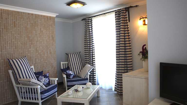 Die Zimmer sind mit Heizung, Meerblick von Balkon oder Terrasse, Fernseher, WLAN, Safe und Minibar ausgestattet. Jede Unterkunft verfügt über ein Doppelbett, eine Kochnische mit Mikrowelle und ein Badezimmer mit Haartrockner. Familien- und Nichtraucherzimmer sind ebenfalls verfügbar.