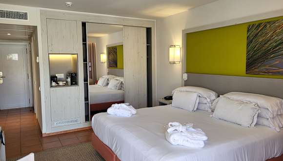 Die Zimmer sind ausgestattet mit Klimaanlage und Heizung. Sie verfügen über einen Balkon oder eine Terrasse, die einen Blick auf den Garten oder den Pool bieten. Die Zimmer sind mit einem Flachbild-TV, einem Telefon, einer Minibar und kostenlosem WLAN ausgestattet. Jedes Zimmer hat ein eigenes Badezimmer mit Dusche und Haartrockner. Nichtraucherzimmer sind ebenfalls verfügbar.