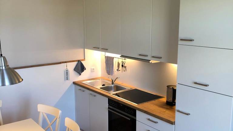 Die Ferienwohnung verfügt über 1 Schlafzimmer und ist mit einem TV ausgestattet. Die voll ausgestattete Küche bietet Annehmlichkeiten wie einen Kühlschrank, Geschirrspüler, Waschmaschine, Ofen und Mikrowelle, was den Gästen die Selbstversorgung erleichtert.