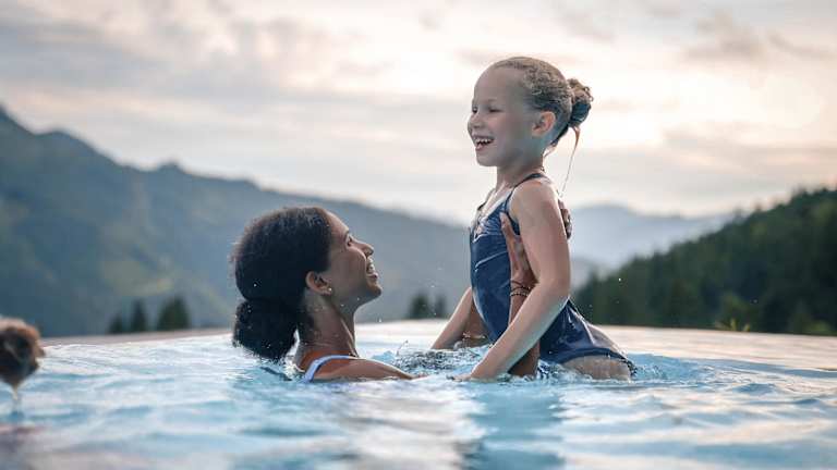 Atme durch mit deiner Familie. Das Vier-Sterne-Superior-Hotel ist herrlich gelegen auf 1200 Metern inmitten des eindrucksvollen Allgäuer Bergpanoramas im Luftkurort Oberjoch, der laut Deutschem Skiverband das beste Familien-Skigebiet der Alpen bietet. Über allen Gipfeln ist Spaß. Deine Kinder werden täglich von morgens bis abends durch unsere 25 erfahrenen PädagogInnen einfühlsam betreut – in fünf altersgerecht gestalteten Clubs vom Baby- bis zum Teenie-Alter auf über 2.000 m² Fläche. Schon ab dem 7ten Lebenstag kommen Babys bei uns in den Urlaubsgenuss und erleben fürsorgliche Zuwendung. Höhepunkte für alle gibt es zahlreiche: Softplayanlage, Kino & Theater mit täglichem Programm, Kartbahn, Turnhalle, Familien-Bowlingbahn und 5.000 m² Außenanlage mit Kletterwald sowie Rodelbahn und „Windelskischule“, die schon Zweijährigen die ersten Schwünge auf den Brettern ermöglicht. Wer einmal unsere Alpakas, Ponys und Esel zurück in den Stall begleitet, fühlt sich leicht als zukünftiger Pferdeflüsterer. Für nasse Action sorgen die längste Hotel-Reifenwasserrutsche Deutschlands, das Panorama-Hallenbad mit seinem Babyerlebnisbad und der Infinity-Außenpool. Erholung und unglaubliche Vielfalt an Aktivitäten. Mit dem guten Gefühl, deine Kinder optimal aufgehoben zu wissen, genießt du Zeit für dich selbst, die Entspannung in unserer vielfältigen Saunalandschaft, wohltuende Spa-Behandlungen oder den sensationellen Ausblick auf die Gipfel aus dem großzügigen, rundum verglasten Fitness-Center. Zum vollständigen Genuss-Erlebnis gehört auch die Gourmetküche den ganzen Tag über. Sportliche Aktivitäten warten direkt vor der Haustüre: die Bergwelt bietet traumhafte Wandergebiete und das mit beträchtlichen Investitionen modernisierte Skigebiet mit seinen 33 Pistenkilometern und dem großen Schneekinderland ist von unserem Resort aus leicht zu Fuß oder mit unserem eigenen Shuttle erreichbar.