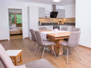 Die Ferienwohnung verfügt über ein Wohnzimmer mit einem Flachbild-TV, eine voll ausgestattete Küchenzeile mit Kühlschrank und Geschirrspüler sowie ein Badezimmer mit Haartrockner. Handtücher und Bettwäsche werden gestellt.