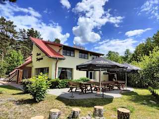 Das Hotel Oberża KNIEJÓWKA liegt in Załom, nur 20 km vom Nationalpark Drawa entfernt. Die Lage bietet eine ideale Ausgangsbasis für Naturliebhaber und Abenteurer, die die unberührte Schönheit der Umgebung erkunden möchten. Die Nähe zum Flughafen Posen-Ławica (ca. 120 km) macht die Anreise zum Hotel einfach und bequem.