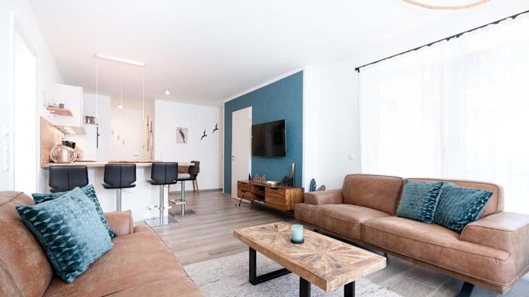 Die Ferienwohnung im Erdgeschoss verfügt über zwei Schlafzimmer sowie einen TV. Die voll ausgestattete Küche umfasst einen Kühlschrank und einen Geschirrspüler, sodass Selbstversorgung möglich ist. Es wird darauf hingewiesen, dass Bettwäsche und Handtücher nicht im Preis enthalten sind.