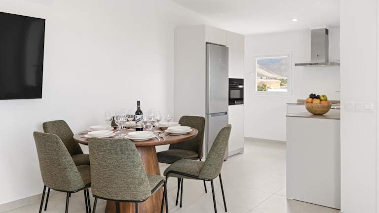 Die Ferienwohnung umfasst 3 Schlafzimmer und 2 Badezimmer. Zudem sind Bettwäsche und Handtücher vorhanden. Zur Ausstattung gehören ein Flachbild-TV, ein Essbereich, eine voll ausgestattete Küche sowie eine Terrasse mit Bergblick.