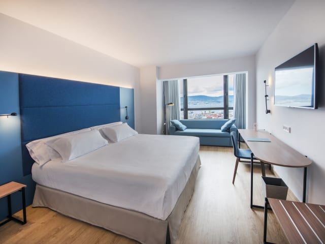 Die 104 Nichtraucherzimmer des Occidental Vigo erstrecken sich über 12 Etagen und sind über einen Aufzug erreichbar. Sie sind komfortabel eingerichtet und verfügen über eine Klimaanlage, Heizung, einen Safe, eine Minibar und einen Schreibtisch. Zur Ausstattung gehören auch ein Direktwahltelefon, ein TV mit Satelliten-/Kabelempfang und kostenfreies WLAN. Die Badezimmer sind mit einer Dusche, einer Badewanne, einem Bidet, einem Haartrockner und einem Kosmetikspiegel ausgestattet. Es gibt auch rollstuhlgerechte Zimmer mit barrierefreien Badezimmern.
