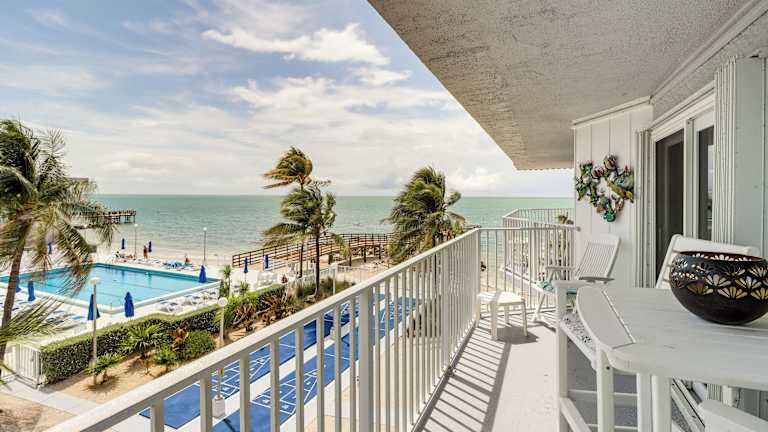 Die Ocean-View Key Colony Beach Condo überzeugt durch kostenloses WLAN, einen Garten und Klimaanlage. Die Ferienwohnung bietet Meerblick und einen Balkon sowie Poolzugang.