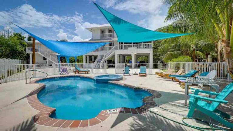 Die Ocean View mit Pool, 4 Bedroom Vila Near Key West bietet eine Übernachtungsmöglichkeit mit einem Außenpool, einem Garten und einem eigenen Strandbereich. Die Villa verfügt über kostenfreies WLAN und einen herrlichen Meerblick. Es sind Haustiere erlaubt, jedoch mit Einschränkungen hinsichtlich Gewicht und Anzahl. Ein kostenfreier Privatparkplatz ist ebenfalls vorhanden. Die Unterkunft ist für Nichtraucher ausgelegt und zeichnet sich durch ständig befolgte Sicherheitsmaßnahmen aus.