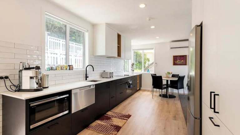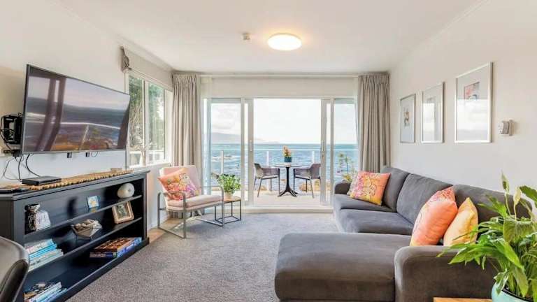 Die Unterkunft Oceanfront Escape liegt in der direkten Nähe des Strandes, nur etwa 900 Meter vom Princess Beach entfernt. Weitere Strände, wie der Lyall Bay Surf Beach, sind in einer Entfernung von 2,1 km erreichbar. Die Lage bietet zudem eine gute Anbindung an den Flughafen Wellington, der sich in 4 km Entfernung befindet.