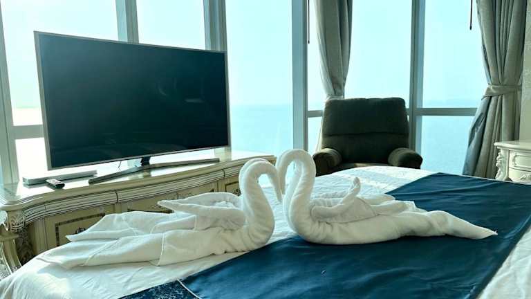 Oceanfront Luxury Condo in Pattaya with Private Beach and Inifinity Pool bietet Übernachtungsmöglichkeiten mit kostenlosem WLAN und Klimaanlage. Die Unterkunft umfasst einen eigenen Strandbereich und verfügt über einen Garten mit einem Außenpool sowie einen Whirlpool. Zusätzlich stehen ein Billardtisch und Tischtennis zur Verfügung.