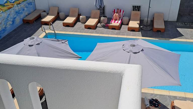 Die Zimmer im Oceanis Resort sind mit Klimaanlage, Kleiderschrank, Flachbild-TV, eigenem Badezimmer, Bettwäsche, Handtüchern und einer Terrasse mit Poolblick ausgestattet.