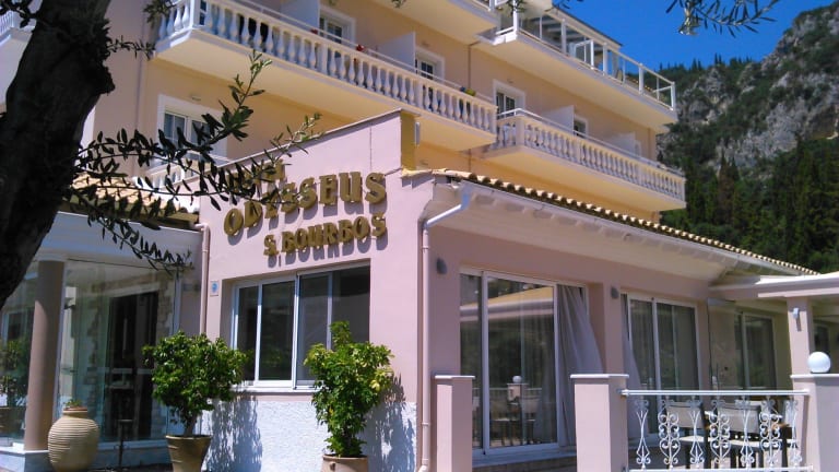 Das Odysseus Hotel in Paleokastritsa bietet seinen Gästen eine atemberaubende Lage mit spektakulärem Blick auf das Ionische Meer. Das familiengeführte Hotel verfügt über komfortable Zimmer mit Klimaanlage und Balkon oder Terrasse, von denen aus Sie entweder das Meer oder den wunderschönen Garten genießen können. Das Hotel bietet ein Restaurant mit Terrasse, auf der Sie Frühstück und Abendessen in Buffetform genießen können. Erfrischungen und Mittagessen erhalten Sie an der Snackbar am Pool, während Sie am späten Nachmittag in der Hauptbar köstliche Cocktails genießen können. Der nächste Strand ist nur 150 m entfernt und der Hauptstrand von Paleokastritsa ist nach 350 m erreichbar. Eine Bushaltestelle befindet sich in unmittelbarer Nähe, von der aus Sie das Ortszentrum, den Hafen und den Flughafen von Korfu bequem erreichen können.