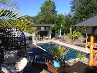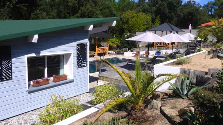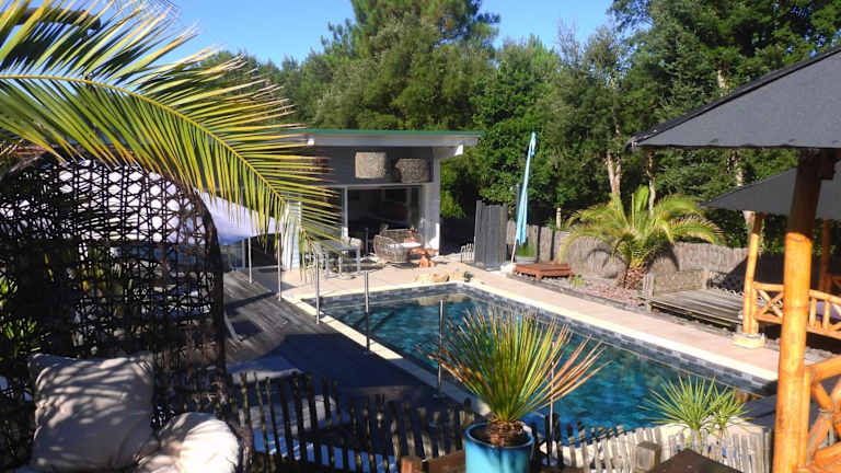 Die Ohana Lodge in Moliets-et-Maa bietet Ihnen einen entspannten und komfortablen Aufenthalt mit einem Außenpool, einer Terrasse und einem Fahrradverleih. Die Nähe zum Golfplatz und zum Strand machen sie zu einem idealen Ort für Golfliebhaber und Strandurlauber. Die Zimmer sind modern ausgestattet und bieten eine Terrasse mit Poolblick. Genießen Sie morgens ein kontinentales Frühstück und erkunden Sie die Umgebung mit dem Fahrrad. Kostenloses WLAN und Parkplätze stehen Ihnen zur Verfügung.