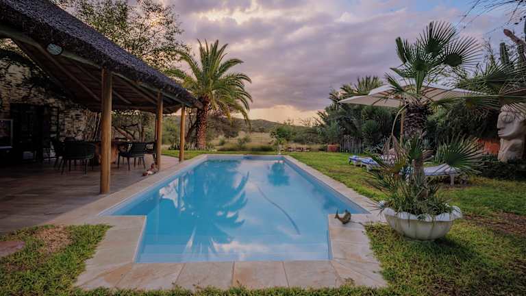 Entspannen Sie am Pool der Lodge oder auf der Sonnenterrasse und genießen Sie die Ruhe und Schönheit der Natur. Die Lodge bietet auch Safaris an, bei denen Sie die einzigartige Tierwelt Namibias entdecken können. Lassen Sie sich von den erfahrenen Guides begleiten und erleben Sie unvergessliche Naturerlebnisse.