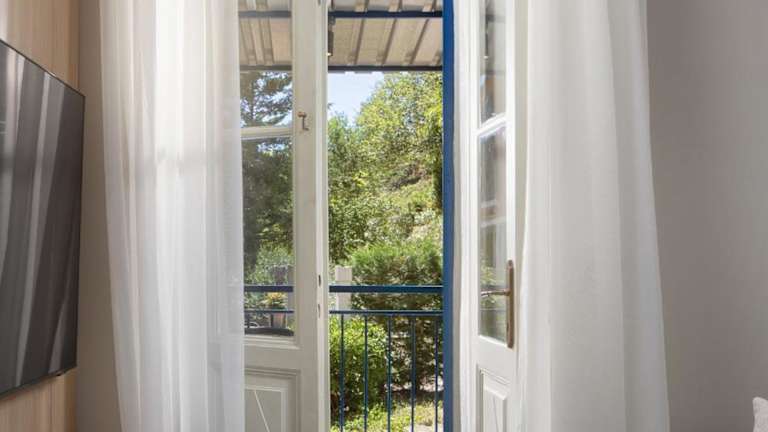 Die Gästezimmer im Oia Room sind mit einem Balkon ausgestattet, von dem aus man den Gartenblick genießen kann. Jedes Zimmer bietet kostenloses WLAN, einen Flachbild-TV, Klimaanlage und ein eigenes Badezimmer.