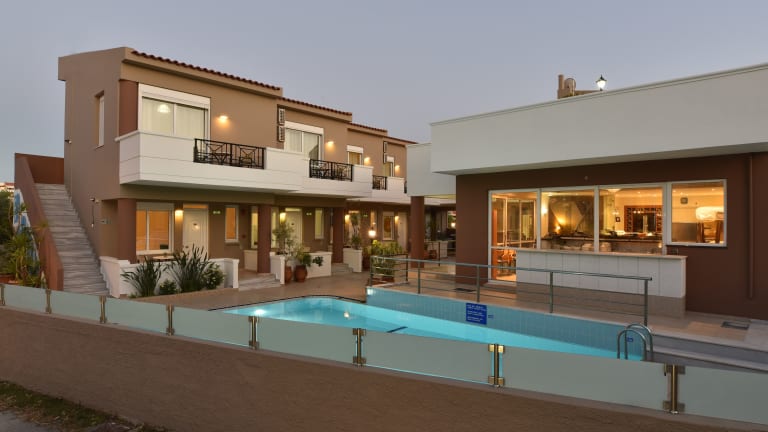 Das Hotel Okeanis II liegt in Agioi Apostoloi, einem beliebten Badeort an der Nordwestküste Kretas. Der Strand ist nur 100 m entfernt und lädt zum Sonnenbaden und Schwimmen ein. In der Umgebung finden Sie Supermärkte, traditionelle Restaurants, Cafés und andere Annehmlichkeiten, die Ihren Aufenthalt angenehm gestalten. Die malerische Stadt Chania mit ihrem historischen Hafen ist nur 3 km entfernt und bietet eine Vielzahl von Sehenswürdigkeiten, Geschäften und Restaurants. Der internationale Flughafen Chania ist ebenfalls gut erreichbar und liegt 13 km entfernt.