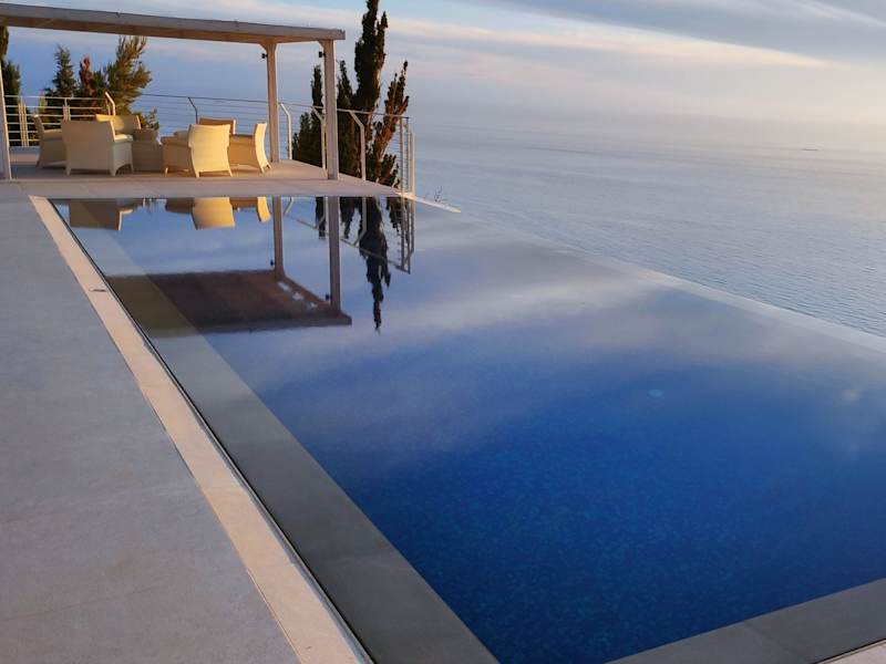 Das Okeanos Luxury Villas - Resort bietet eine beeindruckende Lage auf einer Klippe mit atemberaubendem Blick auf das Ionische Meer. Die Villen verfügen über einen Infinity-Pool und bieten kostenfreies WLAN sowie kostenlose Privatparkplätze. Die Unterkunft ist stilvoll eingerichtet und verfügt über alle Annehmlichkeiten, die Sie für einen komfortablen Aufenthalt benötigen. Die Eigentümer sind freundlich und hilfsbereit und unterstützen Sie gerne bei der Anmietung eines Autos, um die Umgebung zu erkunden.