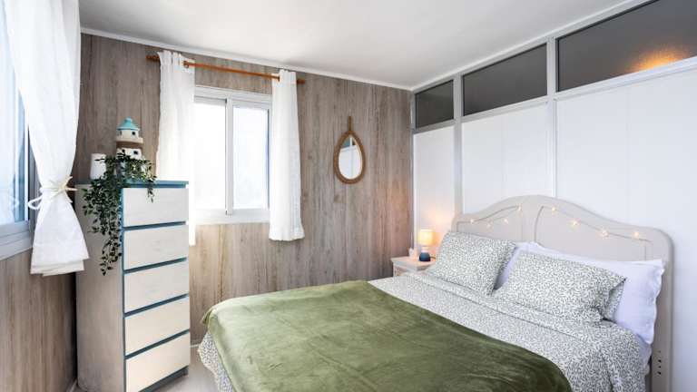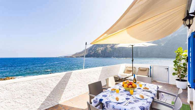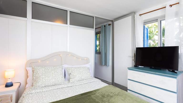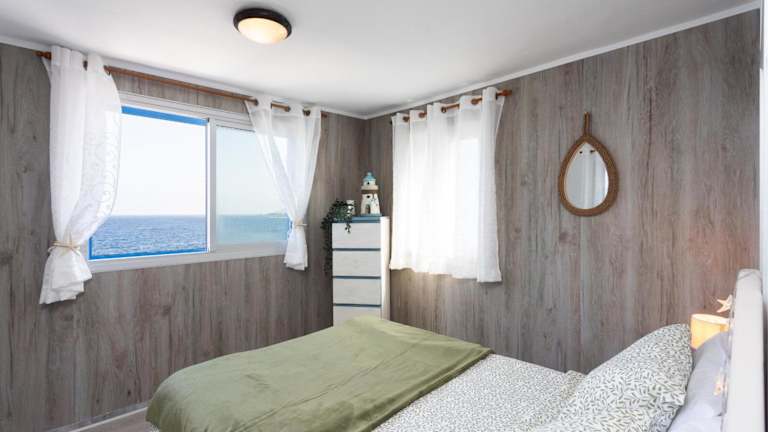 Das Ferienhaus verfügt über 2 Schlafzimmer, 1 Badezimmer sowie über Bettwäsche und Handtücher. Weitere Annehmlichkeiten umfassen einen TV, eine voll ausgestattete Küche und eine Terrasse mit Meerblick.