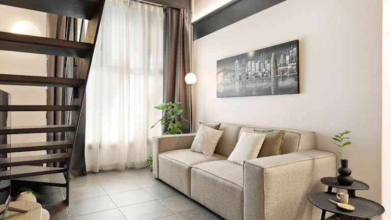 Die Apartments sind modern gestaltet und verfügen über unverputzte Backsteinwände sowie einige mit gewölbten Decken oder freiliegenden Holzbalken. Jedes Apartment umfasst eine Küchenzeile mit Geschirrspüler, Backofen und Kaffeemaschine. Im Wohnbereich stehen ein Flachbild-Kabel-TV, DVD-Player und ein Sofa zur Verfügung. Die meisten Zimmer besitzen einen Balkon, der zusätzlichen Raum für Entspannung bietet. Zu weiteren Annehmlichkeiten gehören ein Kühlschrank, eine Mikrowelle, ein Telefon und ein Haartrockner im Badezimmer.