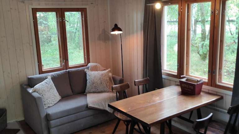 Das Chalet im Old Finnish lakeside cottage with sauna bietet eine gemütliche Unterkunft mit einem Schlafzimmer, einem Wohnzimmer und einer voll ausgestatteten Küche. Das Badezimmer verfügt über eine Dusche und kostenlose Pflegeprodukte. Handtücher und Bettwäsche werden gestellt, um den Gästen den Aufenthalt so angenehm wie möglich zu gestalten. Ein besonderes Highlight ist die Sauna im Chalet, die den Gästen Entspannung und Wohlbefinden bietet.