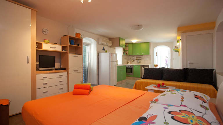 Die Unterkunft liegt in Split, nur 1,5 km vom Strand Bacvice entfernt. In der Umgebung befinden sich interessante Orte wie der Strand Ježinac, der Strand Obojena Svjetlost und das Mladezi Park-Stadion. Der Flughafen Split ist 25 km entfernt, und es wird ein kostenpflichtiger Flughafentransfer angeboten.