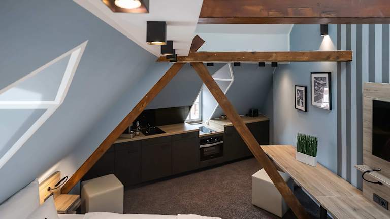 Die Wohneinheiten im Oldtown Studios by dasPaul sind gemütlich und komfortabel eingerichtet. Jede Einheit verfügt über einen separaten Sitzbereich, in dem Sie sich entspannen können. Ein Flachbild-TV sorgt für Unterhaltung und die gut ausgestattete Küchenzeile bietet Ihnen die Möglichkeit, Ihre eigenen Mahlzeiten zuzubereiten. Ein Safe und ein eigenes Badezimmer mit einem Haartrockner sind ebenfalls vorhanden, um Ihren Aufenthalt so angenehm wie möglich zu gestalten.