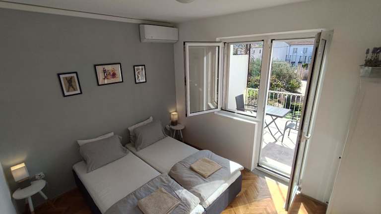 Oleas Stari Grad Hvar - Guest Rooms - 2 Min to Sea & Center ist eine private Unterkunft, die Übernachtungsmöglichkeiten bietet. Die Gäste können kostenfreies WLAN und Klimaanlage nutzen sowie einen Zugang zu einem Garten mit Terrasse genießen. Die Unterkunft wird von einem privaten Gastgeber betrieben und bietet Selbst-Check-in.