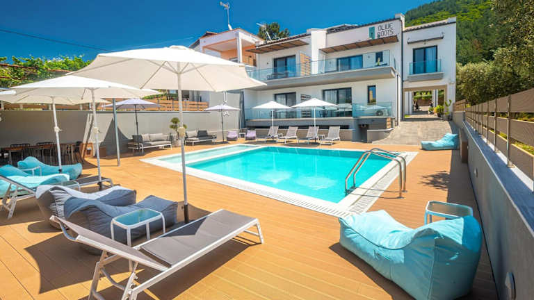 Olive Roots ist eine Unterkunft mit einem saisonalen Außenpool. Es stehen kostenlose Parkmöglichkeiten zur Verfügung sowie ein Garten und eine Terrasse für die Gäste zur Verfügung. Die Unterkunft bietet auch Flughafentransfers an.