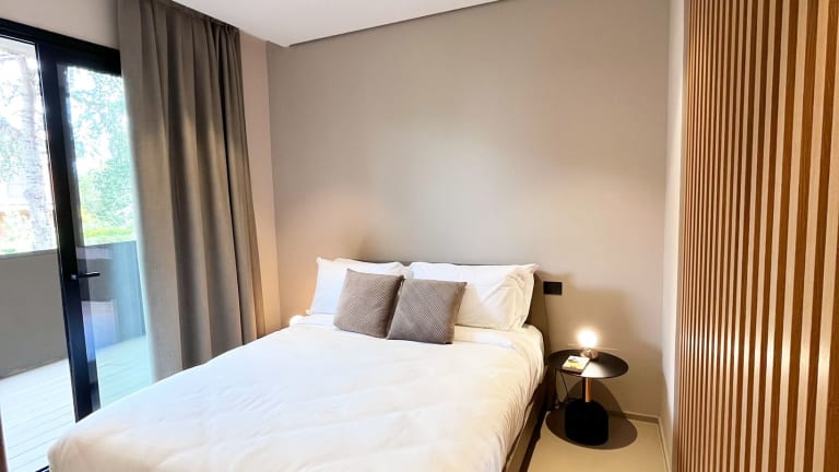 Die Apartments Comfort verfügen über ein großes Zimmer mit voll ausgestatteter Küche, Doppelbett, Kleiderschrank, Terrasse und eigenem Bad. Die Apartments Deluxe haben zwei offene Räume (ohne Innentüren): einen Schlafbereich mit Doppelbett und Kleiderschrank; eine Wohnküche mit Tisch, Stühlen, voll ausgestattete Küche sowie eine Terrasse und ein eigenes Badezimmer. Alle Apartments bieten kostenloses Set, TV, WLAN-Verbindung und Smart-TV.