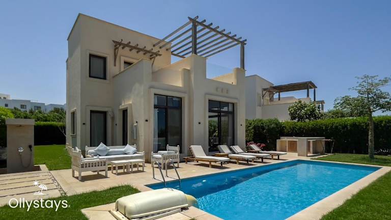 Die Ollystays 4BR Villa Heated Pool El Gouna verfügt über eine großzügige Ausstattung, darunter einen Außenpool, einen Garten, eine Sonnenterrasse und ein Restaurant. Die Villa bietet eine angenehme Atmosphäre und Blick auf den Pool sowie auf den See. Die Mitarbeiter an der Rezeption sprechen Arabisch und Englisch.