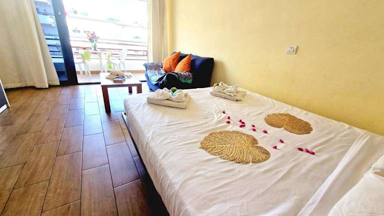Die Unterkunft OLYMPIA STUDIO, OCEAN VIEW liegt approximately 1,4 km vom Erlebnisbad Aqualand entfernt und etwa 500 m vom Strand Bobo. In der näheren Umgebung befinden sich interessante Orte wie der Siam Park, der Golfplatz Golf Las Americas und der Colon Port. Der nächstgelegene Flughafen ist der Flughafen Teneriffa Süd, welcher sich 18 km von der Unterkunft entfernt befindet.