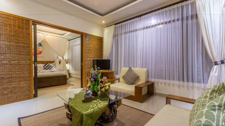 Das Om Ham Retreat and Resort bietet 40 Zimmer auf 4 Etagen. Jedes Zimmer ist klimatisiert und verfügt über einen Flachbild-Sat-TV, eine Minibar und einen Wasserkocher. Kostenlose Pflegeprodukte, Bademäntel und Hausschuhe stehen Ihnen ebenfalls zur Verfügung. Einige Zimmer bieten einen Balkon oder eine Terrasse mit Blick auf den Garten. WLAN ist in allen Bereichen kostenlos verfügbar.