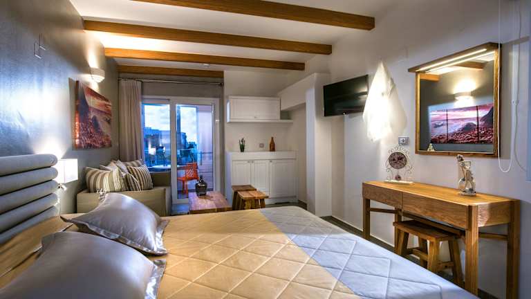 Die Zimmer und Suiten im Omiros Boutique Hotel sind geschmackvoll dekoriert und bieten kostenfreies WLAN. Jede Unterkunft verfügt über einen Flachbild-Sat-TV, eine Klimaanlage und einen Sitzbereich. Die meisten Zimmer haben Zugang zu einem möblierten Balkon oder einer Terrasse. Ein Minikühlschrank und ein eigenes Bad mit Haartrockner und kostenlosen Pflegeprodukten sind ebenfalls vorhanden. Ein Safe steht zur Verfügung. Einige Zimmer bieten auch ein separates Schlafzimmer oder einen Blick auf den Pool.