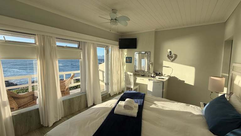 Das Hotel On the Rocks in Gansbaai bietet eine malerische Lage mit Meerblick und ist der perfekte Ort, um sich zu entspannen und die Natur zu genießen. Mit einem Außenpool, einem Garten und einer Terrasse können Sie die Sonne Südafrikas in vollen Zügen genießen. Das kostenfreie WLAN und die Privatparkplätze sind weitere Annehmlichkeiten, die den Aufenthalt angenehm gestalten. Starten Sie Ihren Tag mit einem köstlichen englischen oder irischen Frühstück und erkunden Sie dann die Umgebung beim Wandern. Stanford's Bay ist nur 400 m entfernt und der Village Square erreichen Sie nach 43 km. Der internationale Flughafen Kapstadt ist etwa 147 km entfernt.