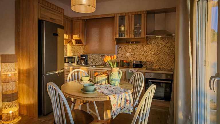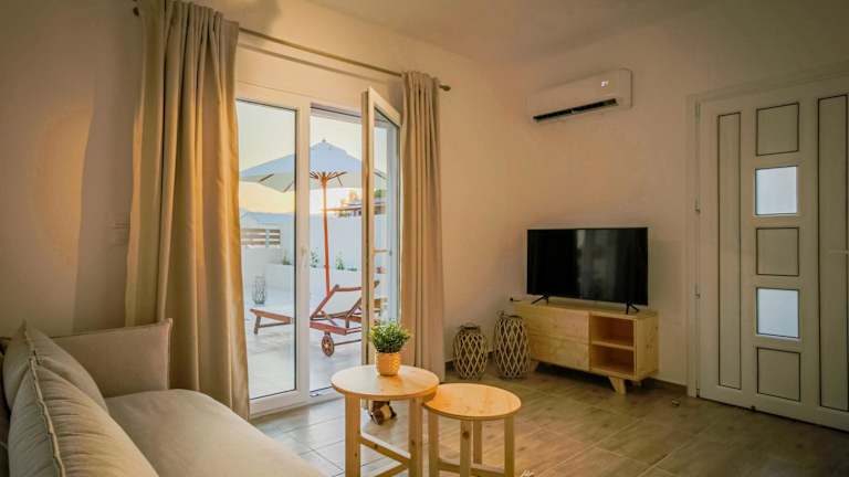 Die Onar Residence bietet ein komfortables Apartment mit zwei Schlafzimmern und zwei Badezimmern. Die Zimmer sind geschmackvoll eingerichtet und mit allem ausgestattet, was Sie für einen angenehmen Aufenthalt benötigen. Die Betten sind mit frischer Bettwäsche bezogen und Handtücher werden ebenfalls zur Verfügung gestellt. Das Apartment verfügt über einen Flachbild-TV, damit Sie Ihre Lieblingssendungen verfolgen können, und eine voll ausgestattete Küche, in der Sie Ihre eigenen Mahlzeiten zubereiten können. Genießen Sie die warmen Abende auf der Terrasse mit Blick auf den Garten.