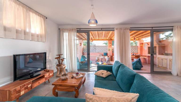 Die klimatisierte Villa bietet Platz für bis zu 6 Personen und verfügt über 3 komfortable Schlafzimmer. Das geräumige Wohnzimmer lädt zum Entspannen ein und die voll ausgestattete Küche ermöglicht es Ihnen, Ihre Lieblingsgerichte zuzubereiten. Die 3 Badezimmer sind modern eingerichtet und mit Dusche sowie kostenlosen Pflegeprodukten ausgestattet. Handtücher und Bettwäsche werden in der Villa bereitgestellt, sodass Sie sich um nichts kümmern müssen.