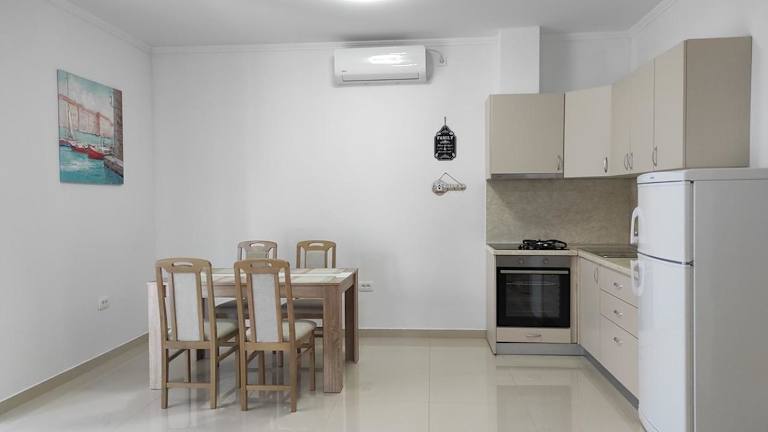 Das Apartment verfügt über 1 Schlafzimmer, ein Wohnzimmer sowie eine voll ausgestattete Küche mit Kühlschrank. Des Weiteren sind ein Badezimmer mit Dusche und Haartrockner vorhanden. Handtücher und Bettwäsche werden bereitgestellt.