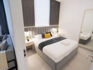 Die Wohnung bietet ein Schlafzimmer und ist klimatisiert. Die Ausstattung umfasst einen Flachbild-TV und eine komplette Küche.
