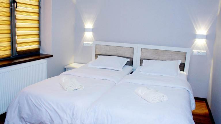 Die Ferienwohnung umfasst zwei Schlafzimmer, ein Wohnzimmer und ein komplett ausgestattetes Bad mit Badewanne und Haartrockner. Außerdem verfügt sie über eine vollausgestattete Küche mit Kühlschrank und Wasserkocher. Handtücher und Bettwäsche sind in der Unterkunft verfügbar.